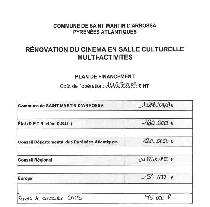 Vous trouverez ci-joint le plan de financement du projet :